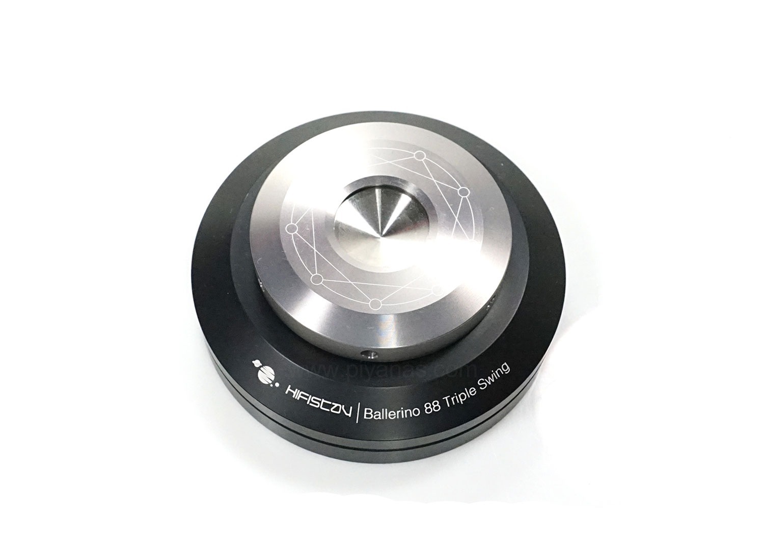 Hifistay BALLERINO TRIPLE腳釘/8 件組(黑/銀色),釘盤尺寸88 毫米。 為您的音箱量身打造的特別禮物。有效控制並消除振動。音質卓越,即使是大型管弦樂團的演奏,也能呈現完整清晰的細節。 屬性使用矽膠墊和陶瓷軸承來減少釘腳底座的初始振動。工件採用硬鋁合金材料製成,經CNC工具機加工成型,並經過陽極氧化和硬質塗層處理。所有部件均為非磁性材料。Spike 的底部底座高度可調,確保使用者始終保持水平和穩定的位置。由 3 個陶瓷滾珠軸承支撐