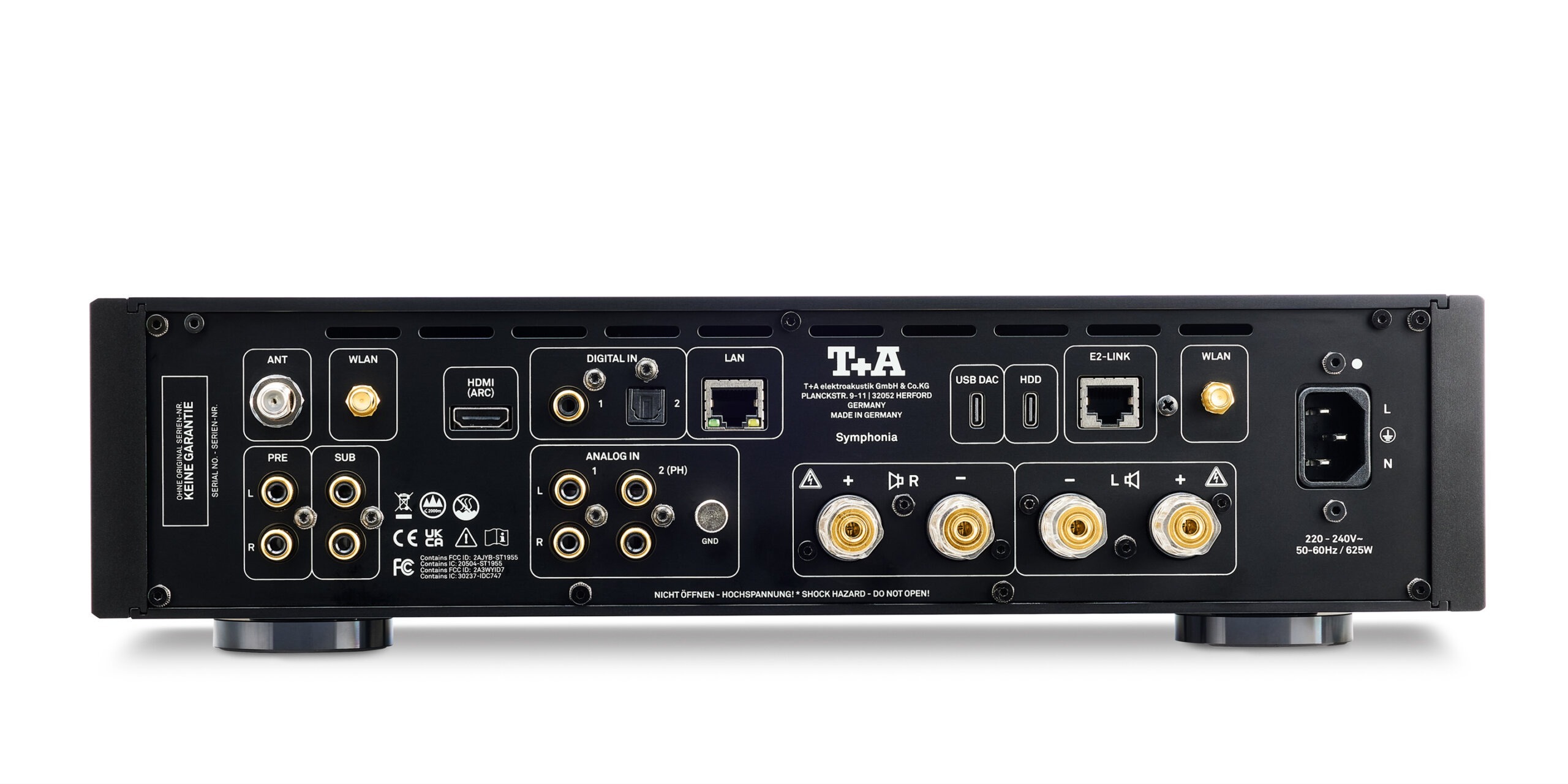 與所有 T+A 產品一樣,Symphonia 的打造也秉持著一個大膽的願景:打造一個功能強大的“一體式系統”,重新定義一切可能。憑藉豐富的音源,它提供了近乎無限的播放選項。其先進的 DSD 和 PCM 轉換器將數位訊號轉換為飽滿、音質驚豔的類比音景,而內建的 250 瓦功放則以非凡的清晰度和深度賦予了這種音效以鮮活的生命力。 Symphonia的核心是我們第三代高傳真串流架構 (ASA G3)。這種先進的軟硬體組合確保輕鬆存取串流媒體服務、USB 音源,並