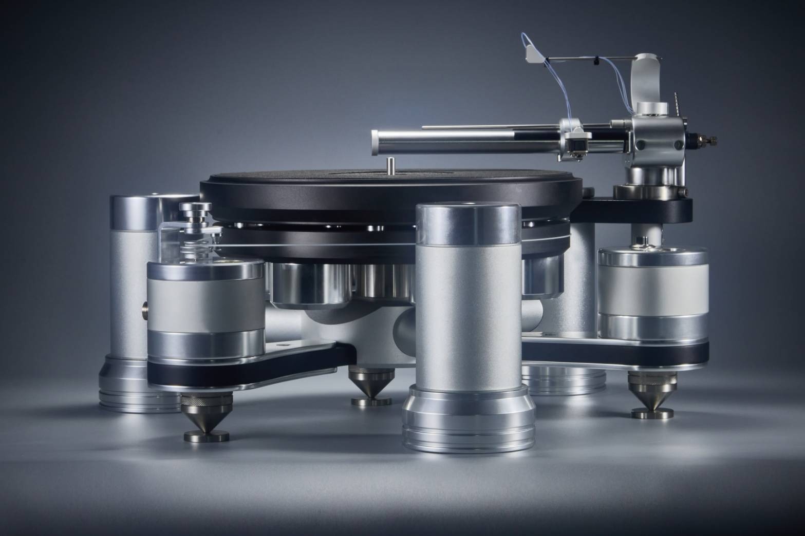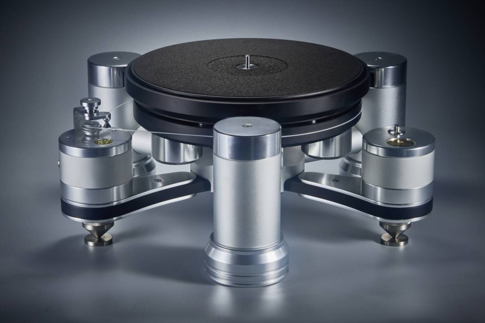 2片式實心鋁合金轉盤、雙層懸浮、磁力驅動、更低的底噪、浮凸的音像、更寬深的音場表現.金屬軸心、馬達分離式設計、唱臂另購.含ー片9吋金屬臂板、亦有12吋金屬臂板可供選擇轉盤座及馬達座皆爲實心金屬底座、可調式三點式金屬腳柱.交流同步電機、皮帶傳動專利33.3/45 rpm機械式手動切換Specifications110V、220V 50/60電壓可用(依不同國家地區)轉盤重量14kg、總重32Kg尺寸:480 x 410 x 220 mm (W x D x H